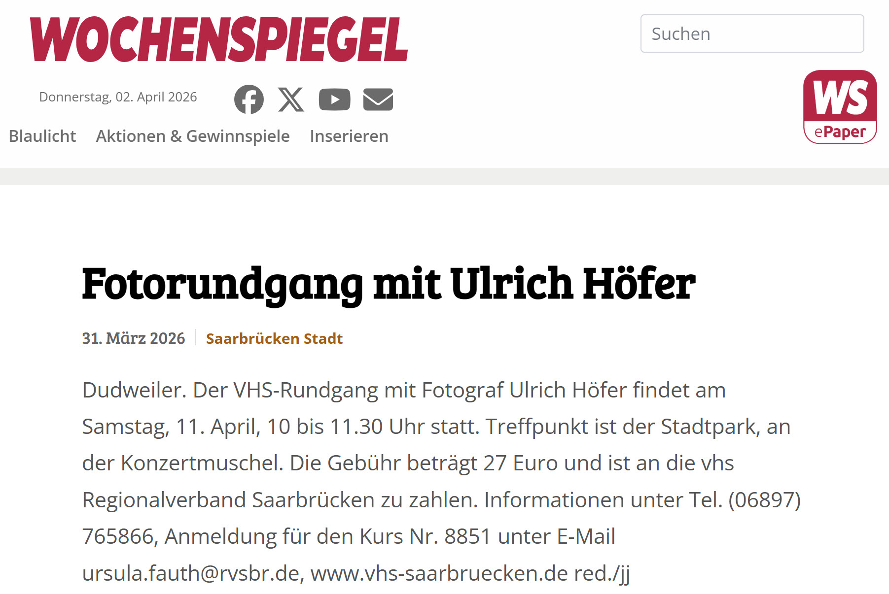 Auf den Fotorundgang hat heute der Wochenspiegel hingewiesen: